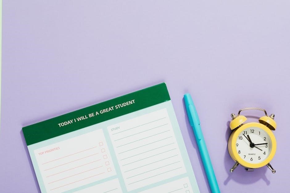 Student planner printable PDFs facilitate seamless integration with online learning, aiding in managing digital coursework and balancing virtual commitments effectively.